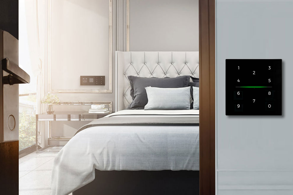 - Khóa cửa thông minh kết hợp chiếu sáng tự động: Cài đặt hệ thống khóa cửa thông minh giúp tự động kích hoạt đèn khi khách bước vào phòng, đảm bảo không gian sáng sủa mà không cần phải tìm công tắc.